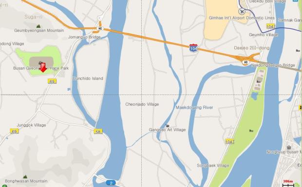 The racecourse is located in the countryside west of Busan and Southwest of Gimhae Airport (click to enlarge)